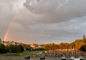 Під час свого виступу він відреагував на рясні краплі жартом: Deszcz pada, dzieci rosną. («Дощ падає – діти ростуть»). А потім, після оплесків і скандування «Любимо Тебе!», Папа Римський заспівав польською мовою: «Не падай, дощ, бо тебе тут не треба. Обійди гори, обійди ліси і вернися до неба!». Закінчивши виступ і відповідаючи на численні скандування молоді «Многая літа!», Іван Павло ІІ підійшов до мікрофону зі словами: «Многая літа, многая літа… Тому, власне, дощ і падає, щоб діти росли…»