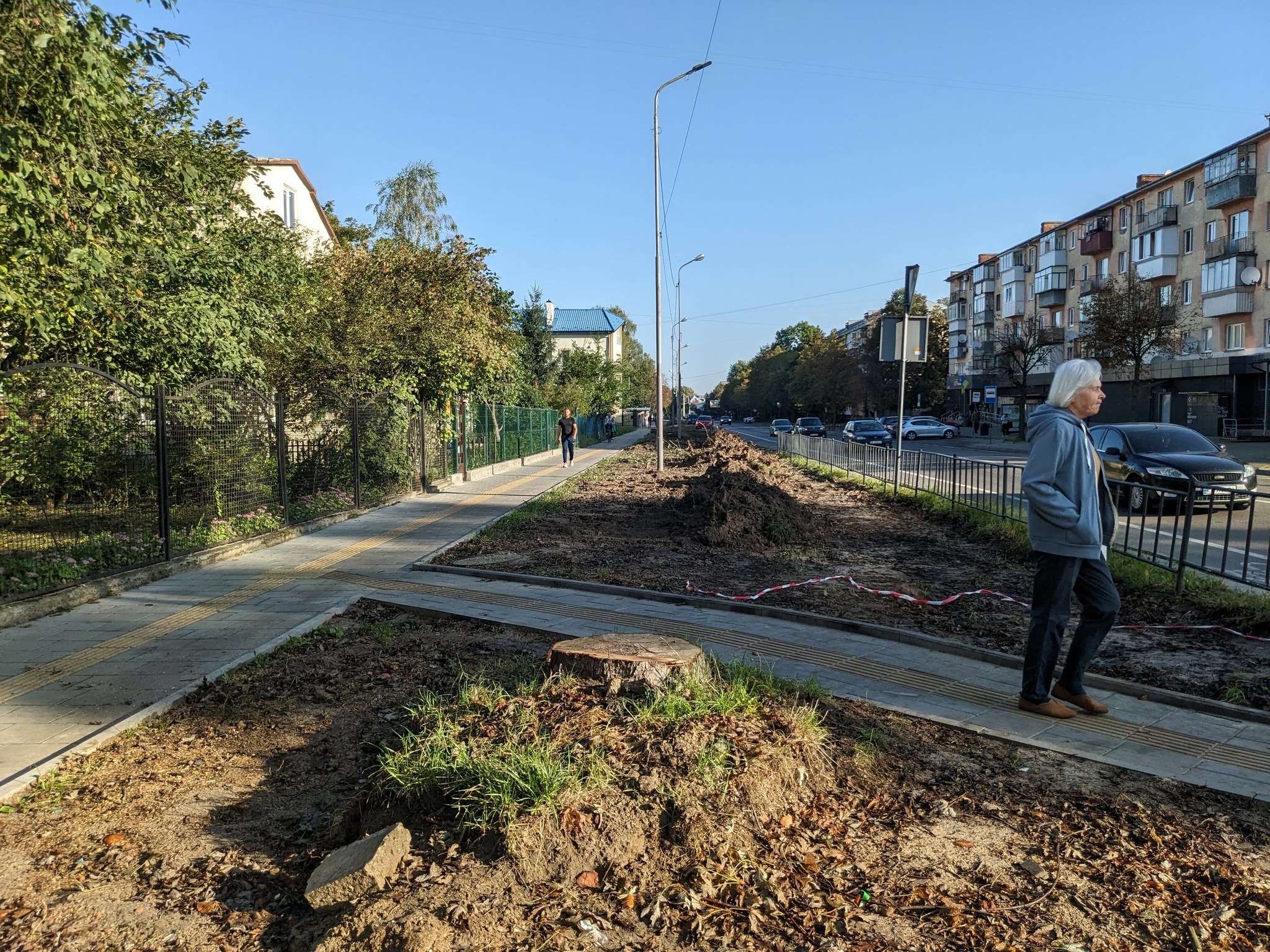 «У деяких місцях встановлюють маленькі інформаційні стенди навіть біля ремонту тротуарів, де все очевидно, а тут ціла алея дерев під бензопилу і жодної інформації, що сталося і чому…», – йдеться у дописі.