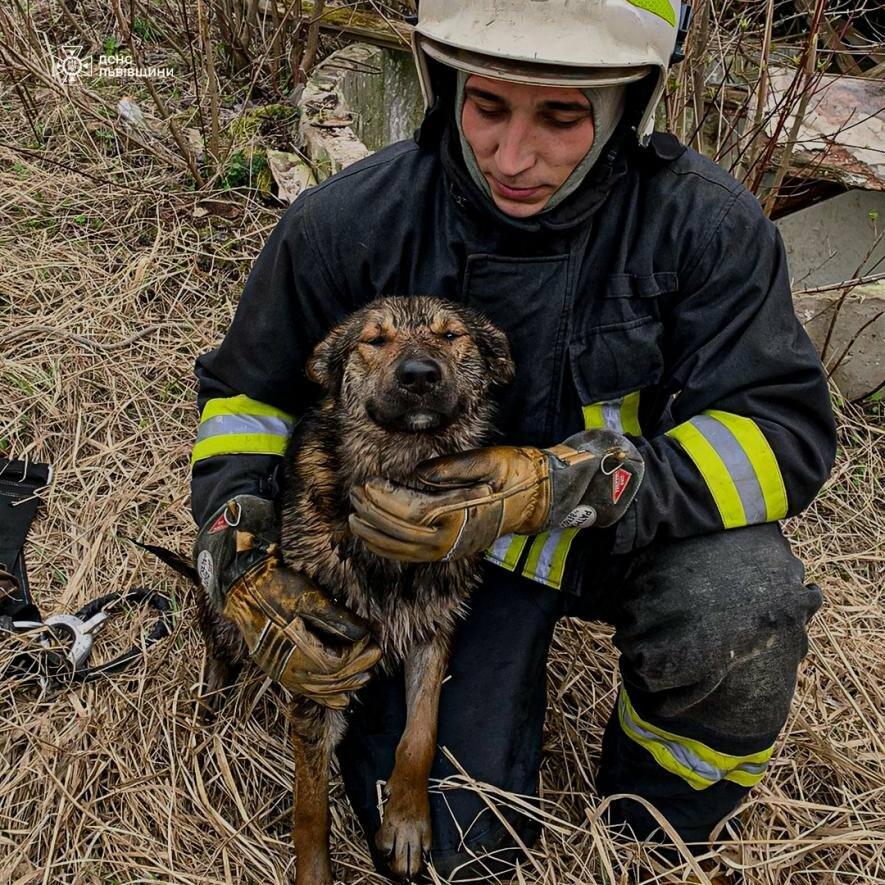 «Уже за кілька хвилин тварину підняли на поверхню. Наляканий, але неушкоджений, чотирилапий знову відчув під лапами землю», — повідомили в ДСНС.