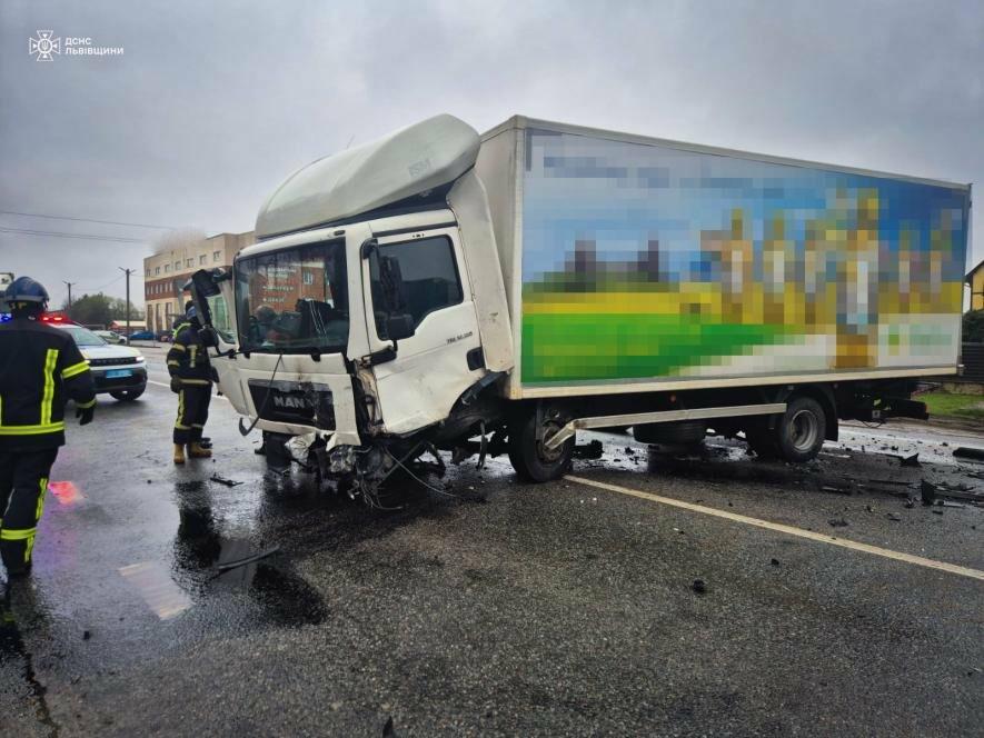 У зіткненні брали участь вантажний автомобіль MAN та легковик BMW. Внаслідок сильного удару пасажири BMW опинилися затиснутими в салоні, повідомили в ДСНС Львівщини.