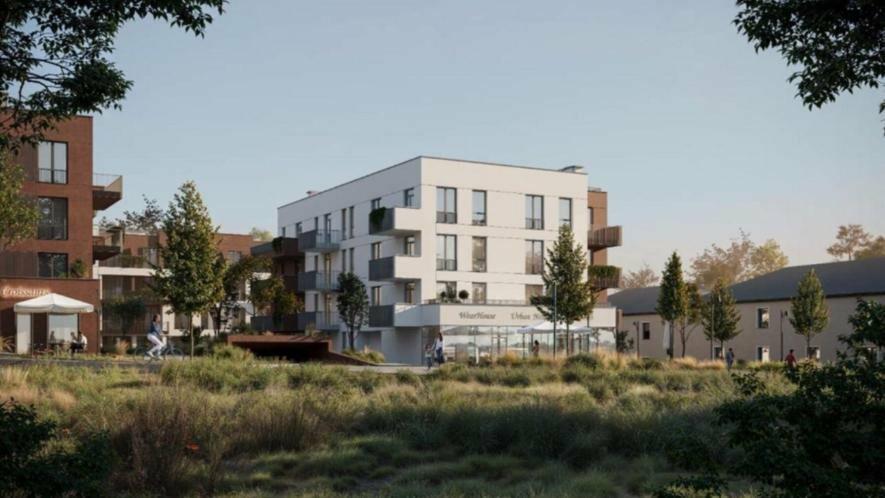 У межах садового товариства «Будівельник 1» запланували будівництво нового чотириповерхового житлового будинку з білим фасадом та коричневими акцентами.